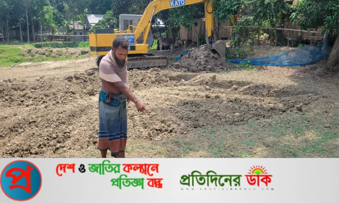 অভিযুক্ত তিন ব্যক্তির জমি আমার জমির পূর্ব পাশে অবস্থিত। তারা তাদের ফসলি জমিতে পুকুর খননের নামে ইটভাটায় মাটি বিক্রির উদ্দেশ্যে একটি ভেকু মেশিন ভাড়া করে নিয়ে এসেছেন। ইতিমধ্যে জমির চারদিকে মাটি কেটে চালা তৈরি করেছেন।