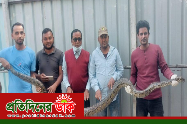 সিরাজগঞ্জের বেলকুচি সোহাগপুরে যমুনার চর থেকে আহতাবস্থায় সাড়ে ১০ ফুট লম্বা একটি অজগর (পাইথন) সাপ উদ্ধার করা হয়েছে। আজ সোমবার দুপুরের পর স্বেচ্ছাসেবী সংগঠন ‘দি বার্ড সেফটি হাউস’র সদস্যরা সাপটি উদ্ধার করে বনবিভাগের কাছে হস্তান্তর করেন।