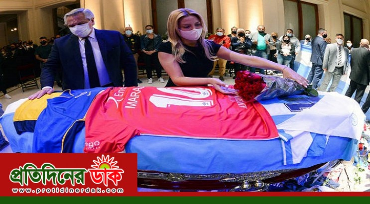 প্রেসিডেনশিয়াল প্যালেসে ম্যারাডোনার মৃতদেহ রাখা কফিন জড়ানো ছিল আর্জেন্টিনার জাতীয় পতাকায়। ছিল তার ১০ নম্বর সেই জার্সিও। দুপুরে যখন ভক্তরা ফুটবল কিংবদন্তিতে শেষ শ্রদ্ধা জানাতে আসেন, তখন প্রায় এক কিলোমিটার পর্যন্ত দীর্ঘ মানুষের লাইন দেখা যায়। পরিস্থিতি নিয়ন্ত্রণে কঠোর অবস্থান নিতে হয় পুলিশকে।