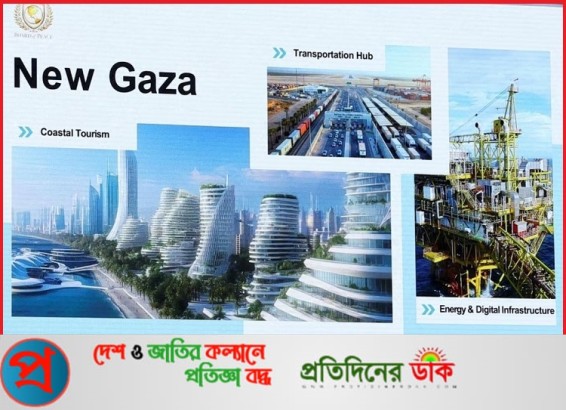 ‘মনে-প্রাণে আমি একজন রিয়েল এস্টেট ব্যবসায়ী এবং এটি পুরোপুরি জায়গার খেলা। সমুদ্রের ধারের এই জায়গাটি দেখুন। এই অসাধারণ ভূখণ্ডটি দেখুন। অনেক মানুষের জন্য এটি অনেক বড় কিছু হয়ে উঠতে পারে,’ যোগ করেন মার্কিন প্রেসিডেন্ট। ট্রাম্পের জামাতা জ্যারেড কুশনার গত অক্টোবরে কার্যকর হওয়া যুদ্ধবিরতির আলোচনায় তিনি ভূমিকা রেখেছিলেন। তিনি বলেন, গাজায় প্রায় ৯০ হাজার টন গোলাবারুদ ব্যবহার করা হয়েছে এবং সেখানে প্রায় ছয় কোটি টন ধ্বংসস্তূপ জমে আছে, যা পরিষ্কার করতে হবে।