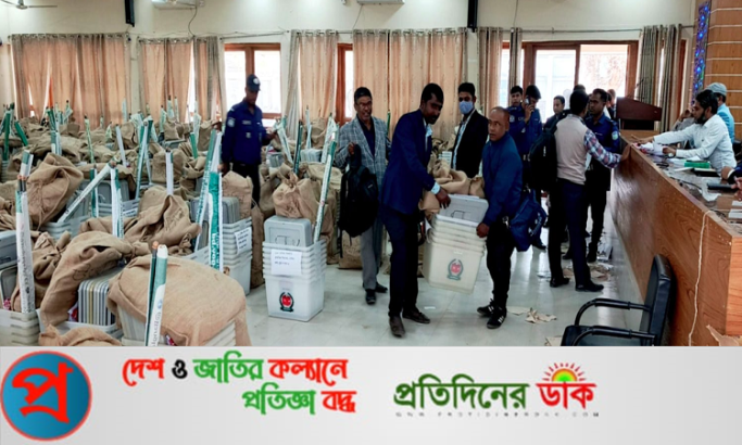 নির্বাচন শান্তিপূর্ণভাবে সম্পন্ন করার লক্ষ্যে জামালপুরে নির্বাচনী সরঞ্জাম বিতরণ