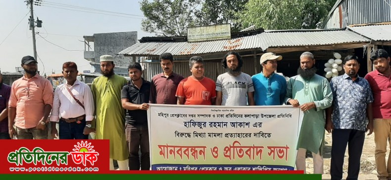মহিপুরে সংবাদকর্মীর বিরুদ্ধে মিথ্যা মামলা প্রত্যাহারের দাবিতে মানববন্ধন ও প্রতিবাদ সভা