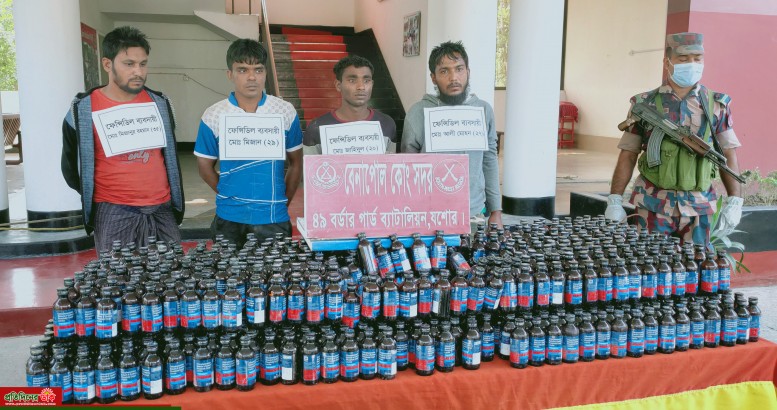 যশোরের বেনাপোল সাদিপুর সীমান্তের গলাচিপা পোষ্ট এলাকা থেকে ১৩৯৪ বোতল ভারতীয় ফেন্সিডিল সহ তিন জন মাদক ব্যবসায়ী ও অপরদিকে শিকড়ী সীমান্ত এলাকা থেকে ৭০ বোতল ফেন্সিডিল সহ একজন মাদক ব্যবসায়ীকে আটক
